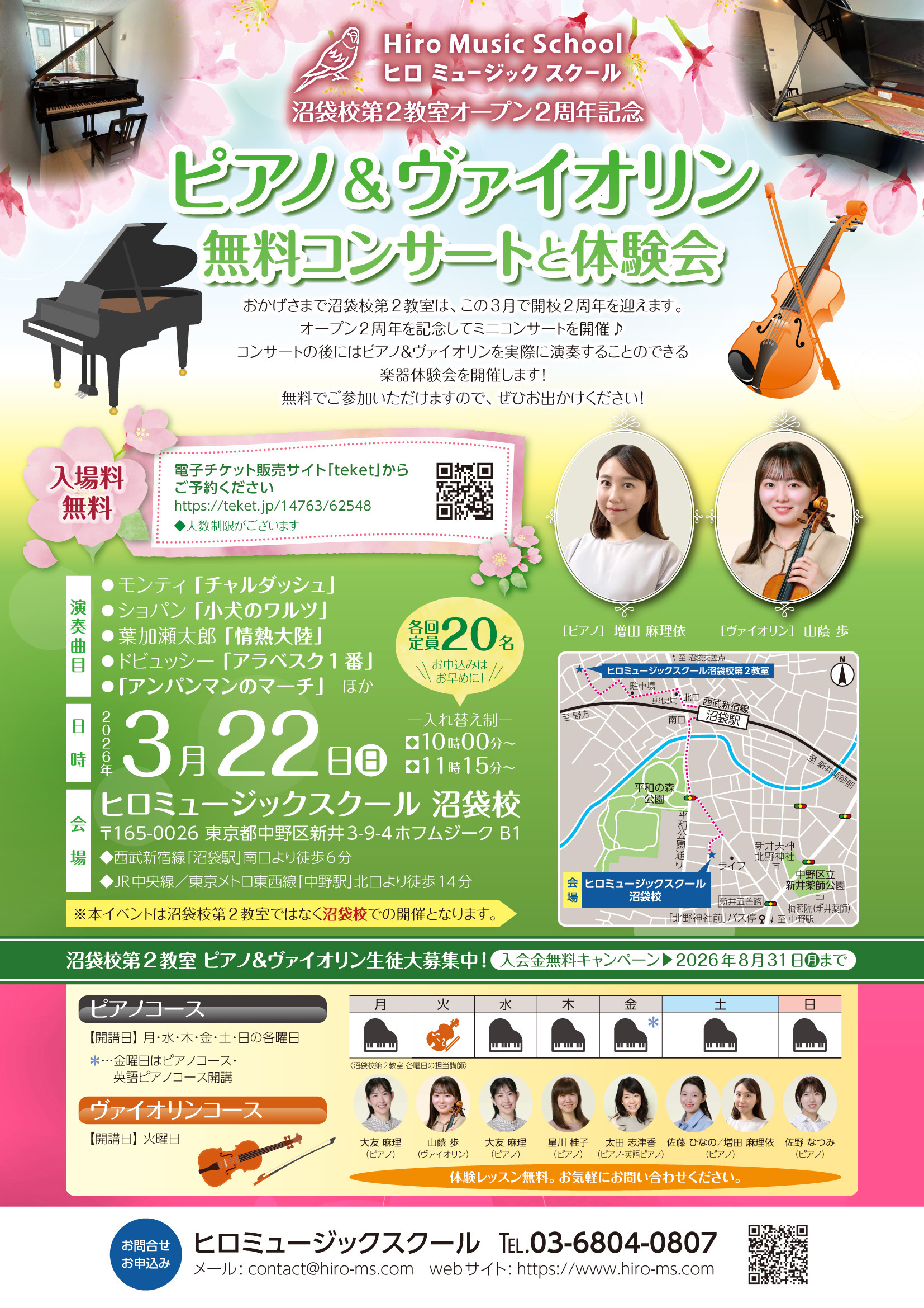 ピアノ&ヴァイオリン無料体験会&コンサート